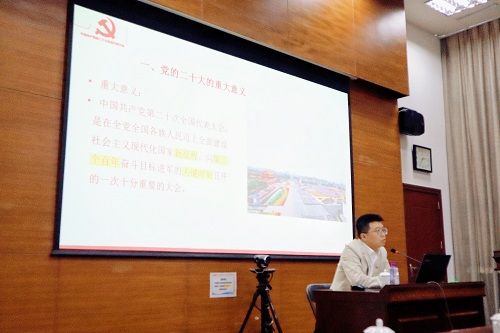 張龍教授從“黨的二十大的重大意義、黨的二十大報(bào)告的重要論斷和重大創(chuàng)新、如何準(zhǔn)確完整學(xué)習(xí)貫徹黨的二十大精神”等三個(gè)方面做了深入淺出的分析和解讀,同時(shí)將黨的二十大精神與廣東省、珠海市的發(fā)展實(shí)際相結(jié)合,重點(diǎn)詮釋了特區(qū)精神,分析了珠海城市發(fā)展的優(yōu)勢,也解讀了“產(chǎn)業(yè)第一、交通提升、城市跨越、民生為要”工作總抓手的目的和意義。講座主題鮮明,點(diǎn)面結(jié)合,以豐富的案例、詳實(shí)的數(shù)據(jù)和通俗的講解,使大家對(duì)黨的二十大精神的核心要義、精神實(shí)質(zhì)、豐富內(nèi)涵和實(shí)踐要求有了更深入的理解。