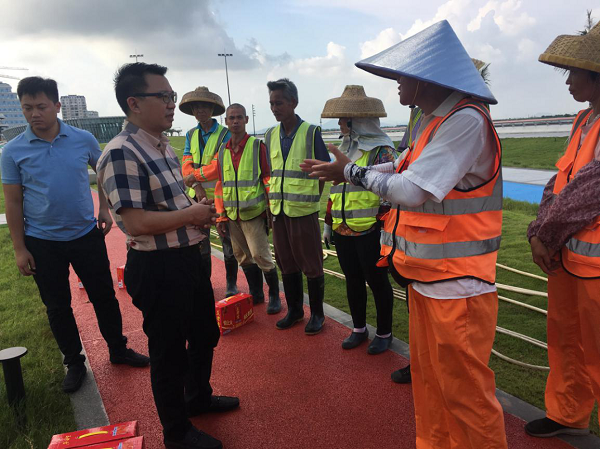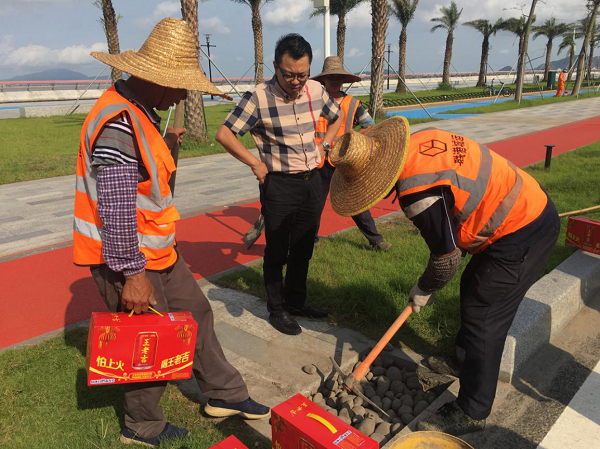 慰問組一行先后來到金山公園、金灣路,分別慰問園林綠化、市政道路管養(yǎng)、水利等一線作業(yè)員工?!?/span>你們辛苦了,感謝你們?yōu)槲拿鞒鞘懈冻龅男燎诤顾团Α保u湘斌董事長對他們?yōu)榫S護(hù)城市環(huán)境衛(wèi)生作出的努力表示感謝,進(jìn)一步了解了員工的工作情況及困難,并再次叮囑他們在烈日和高溫下作業(yè)要采取有效防暑降溫和安全生產(chǎn)保障措施,以健康的身體和愉悅的心情投入到工作中。