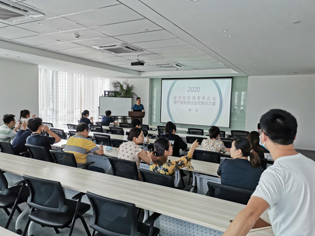 培訓過程中,公司財務融資部、經(jīng)營管理部相關負責人分別就《關于印發(fā)金灣區(qū)區(qū)屬國有企業(yè)投資監(jiān)督管理辦法》、《關于印發(fā)金灣區(qū)區(qū)屬國有企業(yè)資產(chǎn)損失責任追究暫行方案》、《關于印發(fā)金灣區(qū)區(qū)屬國有企業(yè)資產(chǎn)評估管理方案》等文件進行了逐項解讀,就如何貫徹落實好文件精神用以指導日常工作提出了工作思路和想法。培訓過程中,所有參與人員邊聽邊記,結合公司實際主動提出問題,現(xiàn)場進行答疑解惑,確保各項政策抓實、落地。