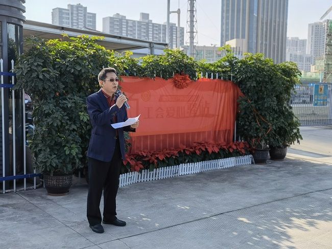 來(lái)自聯(lián)港城運(yùn)綠化部的陳婷作為戶(hù)外勞動(dòng)者代表發(fā)言,愛(ài)心驛站的建設(shè)是分享,也是共享,傳遞愛(ài)心,傳遞暖意,感謝區(qū)總工會(huì)和集團(tuán)工會(huì)為大家創(chuàng)造了如此美好的“暖心之家”,讓他們享受到“熱可納涼、冷可取暖、累可歇腳、渴可飲水”等服務(wù)。
